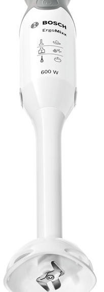 Блендер Bosch MSM 14500 — это погружная модель из серии ErgoMixx. Она представлена в сочетании белого и серого цветов, что позволяет ей вписаться в кухонный интерьер различных видов. Термостойкий пластик, из которого изготовлены корпус, погружная часть и чаша измельчителя, позволяет готовить горячие блюда — например, супы. Устройство оснащено ножом с четырьмя лезвиями QuattroBlade, которые способны качественно измельчить твердые продукты до состояния однородной массы.