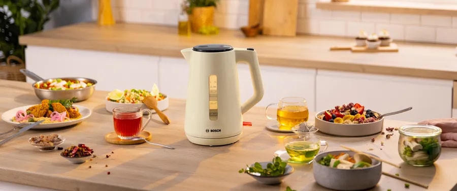 Чайник Bosch TWK 1M127 - это превосходный выбор для тех, кто ценит качество и надежность. Стильный дизайн в бежевом цвете, выполненный из прочного пластика, делает этот чайник не только функциональным, но и эстетически привлекательным. Он станет изысканным дополнением к любой кухне, подчеркнет ваш вкус и стиль. Основное преимущество этого чайника - его мощность. С мощностью в 2400 Вт, он быстро нагревает воду до нужной температуры. Закрытая спираль обеспечивает равномерное и быстрое нагревание, что позволяет сэкономить время при приготовлении напитков.