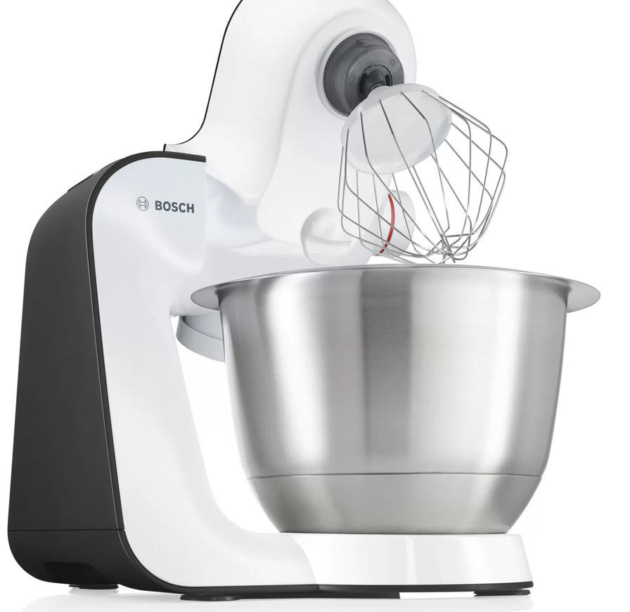 Bosch MUM52120 благодаря планетарному принципу вращения насадок MultiMotion Drive, продукты не прилипнут к стенкам чаши, и идеально перемешаются. Технология плавного пуска позволит избежать резкого старта, а значит множества брызг. Данную модель вы сможете доукомплектовать дополнительными насадками, чтобы расширить её и без того немалые возможности.