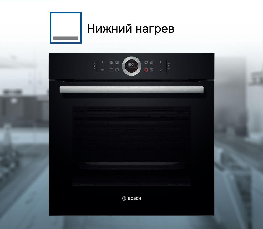 Духовой шкаф Bosch HBG634BB1 оснащен TFT-дисплеем, базовые установки которого помогут подобрать удобную лично вам яркость дисплея или выбрать ночной режим освещения. Само освещение можно включать и отключать, не прерывая процесс готовки.