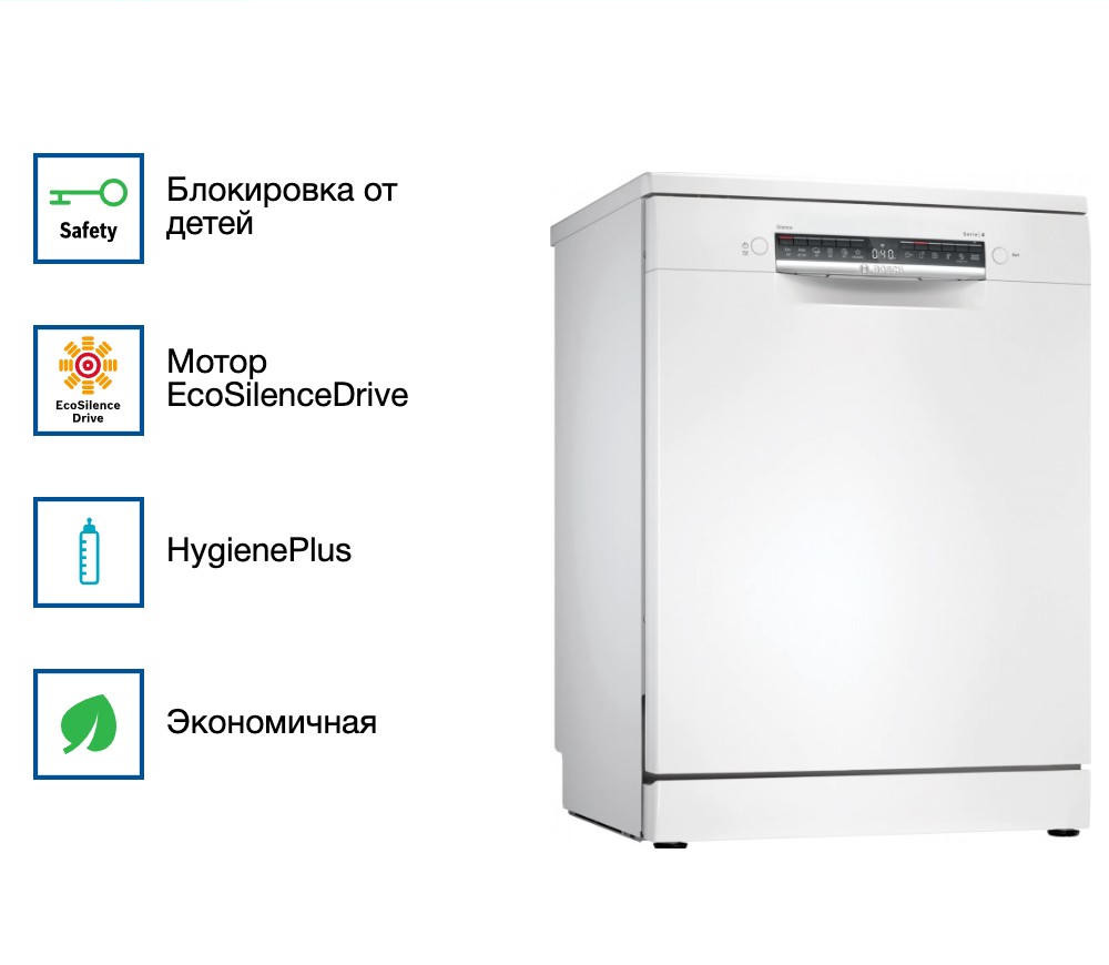Пару месяцев назад пригласил родственников на ужин и сразу проверил машину в реальной нагрузке. Загрузил около десятка комплектов, включил интенсивную программу — посуда вышла чистая, а сушка с конденсационным режимом справилась без следов воды на чашках. Особенно понравилась удобная верхняя полка с регулировкой по высоте: хватило места для высоких бокалов, и переставлять корзины оказалось просто благодаря системе Rackmatic-3. Часто пользуюсь режимом половинной загрузки и функцией быстрой программы с VarioSpeedPlus, когда нужно срочно освободить место на столе — экономит время и воду, а индикатор оставшегося времени помогает планировать. Умное подключение через Home Connect оказалось полезным: запустил цикл с телефона, пока занимался приготовлением десерта. Для семьи с детьми важна блокировка от детей и частичная защита от протечек — спокойнее за безопасность. Сенсор чистоты воды и нержавеющая камера снижают риск неприятных запахов, а уровень шума действительно не мешает общению. Я доволен покупкой.