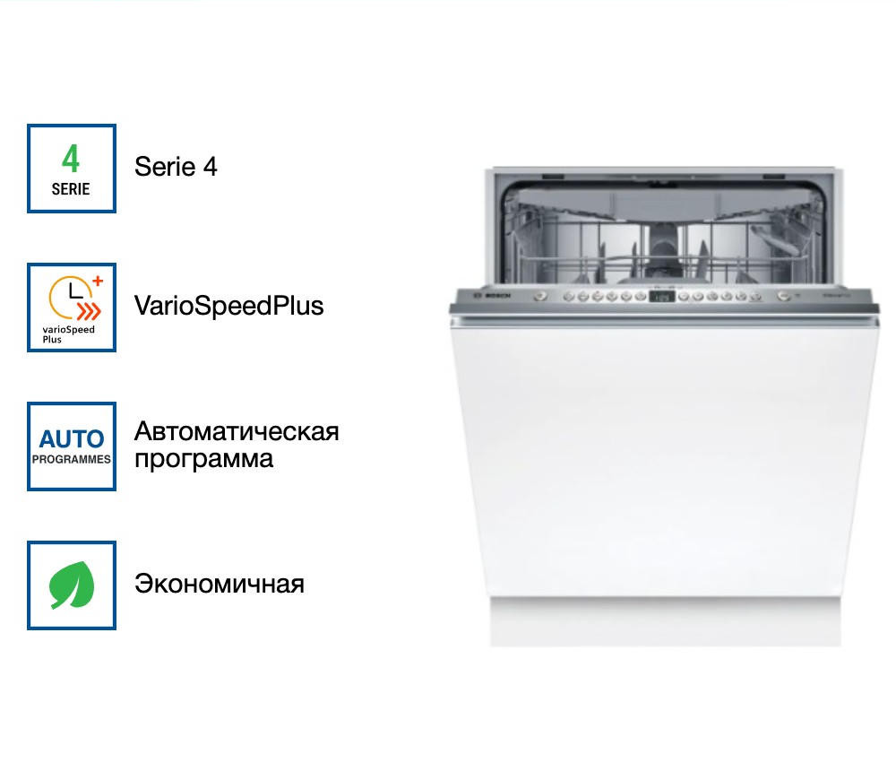Эта посудомоечная машина просто великолепна! Она вмещает до 13 комплектов посуды, что очень удобно для больших семей. Мне особенно понравилось наличие различных программ: быстрая, экономичная, интенсивная и даже специальная для стекла. Это позволяет выбрать наиболее подходящий режим для любого типа посуды! Функция половинной загрузки экономит воду и электроэнергию, когда машина не заполнена полностью. А встроенный сенсор чистоты воды AquaSensor контролирует качество воды и, при необходимости, автоматически запускает дополнительное ополаскивание. Это гарантирует идеальную чистоту посуды! Мне также понравилось, что машина оснащена системой AquaStop, которая предотвращает протечки. Это дает дополнительное спокойствие, особенно когда вы оставляете машину работать ночью или во время отсутствия дома. Управление машиной простое и удобное благодаря закрытой панели управления с дисплеем и кнопками. Индикаторы на панели позволяют следить за наличием ополаскивателя и соли, а также отображают время до окончания программы. Таймер отсрочки запуска - еще одна полезная функция. Вы можете настроить машину так, чтобы она начала работать в удобное для вас время, например, ночью, когда тарифы на электроэнергию ниже. В общем, я очень довольна этой покупкой! Эта посудомоечная машина - идеальное сочетание функциональности, эффективности и стиля. Она сделала мою жизнь на кухне намного проще и приятнее!