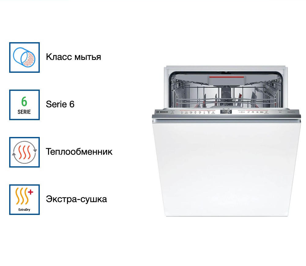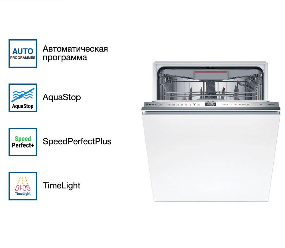 Bosch SMV6ECX08E — это выбор для тех, кто готов инвестировать в комфорт и долгосрочное качество. Машина отлично вписалась в интерьер кухни, несмотря на закрытую панель управления — всё выглядит стильно и лаконично. Особенно порадовало, что даже пластиковая посуда после деликатной программы остаётся чистой и сухой, чего не скажешь о многих других моделях. TimeLight — приятный бонус: мягкий луч на полу показывает, сколько времени осталось до конца цикла, и не нужно заглядывать внутрь. В целом, покупкой доволен полностью: техника оправдывает свою стоимость, экономит время и силы, а главное — делает повседневную рутину значительно проще. Рекомендую тем, кто ценит надёжность, инновации и немецкое качество.