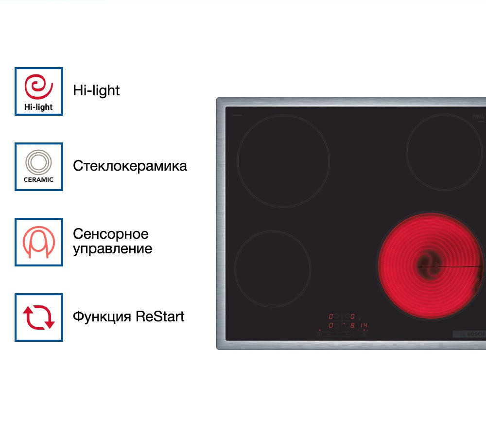 Покупкой данной панели я осталась более чем довольна! Она прекрасно вписалась в интерьер моей кухни, а ее функционал превзошел все ожидания. Управление панелью осуществляется с помощью сенсорных кнопок, что очень удобно и современно. Система управления TouchSelect позволяет легко и быстро выбрать нужную мощность из 17 возможных ступеней. Это дает возможность точно подобрать температуру для приготовления различных блюд. Особенно понравилась функция ReStart, которая помогает продолжить приготовление блюда, если вдруг пришлось отключить панель. Блокировка от детей и функция Cleaning-пауза делают использование панели максимально безопасным и комфортным. Также хочу отметить наличие индикатора остаточного тепла, который помогает избежать ожогов. И что очень важно для меня, как для мамы маленького ребенка, - это наличие главного выключателя и блокировки от детей. Очень удобно, что каждая конфорка имеет свою мощность, что позволяет экономить электроэнергию и время при приготовлении блюд. И, конечно, рамка из нержавеющей стали - это не только стильный элемент дизайна, но и дополнительная защита стеклокерамической поверхности от возможных повреждений. В общем, я просто в восторге от этой панели! Она удобна, функциональна и очень красива! Рекомендую всем, кто ценит качество, стиль и комфорт в своем доме!