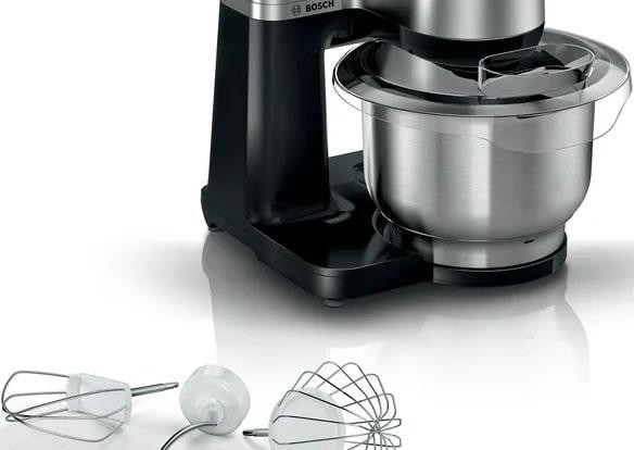 BOSCH MUMS2VM00 оснащён мотором мощностью 900 Вт. Все металлические насадки можно мыть в посудомоечной машине, что значительно облегчает уход. Чаша выполнена из стали повышенной прочности, а корпус из пластика. Емкость ее составляет 3,8 л. Шнур имеет специальный отсек для хранения и не будет мешаться на столе. Электронное управление осуществляется по средствам кнопок и поворотных переключателей, точность и надежность которых доказана временем. Комбайн оснащен 3 насадками: для теста, венчик и крюк. Дополнительно можно укомплектовать его различными принадлежностями по мере необходимости. Гарантия от производителя составляет 12 месяцев.