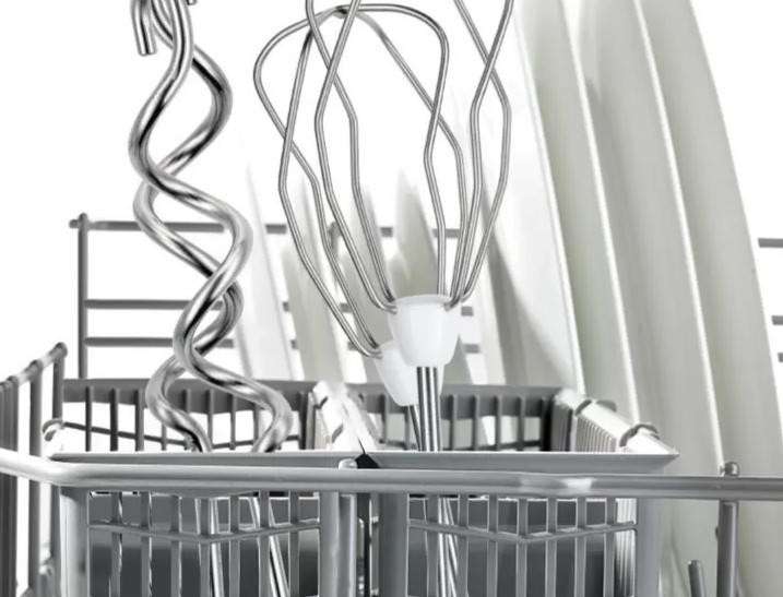 Устройство комплектуется двумя типами насадок: венчики для взбивания и крюки для теста. Это позволяет использовать миксер для самых разнообразных кулинарных задач, от приготовления воздушных кремов до замешивания теста для выпечки. Погружная чаша из пластика обеспечивает удобство в использовании и легкость в очистке.