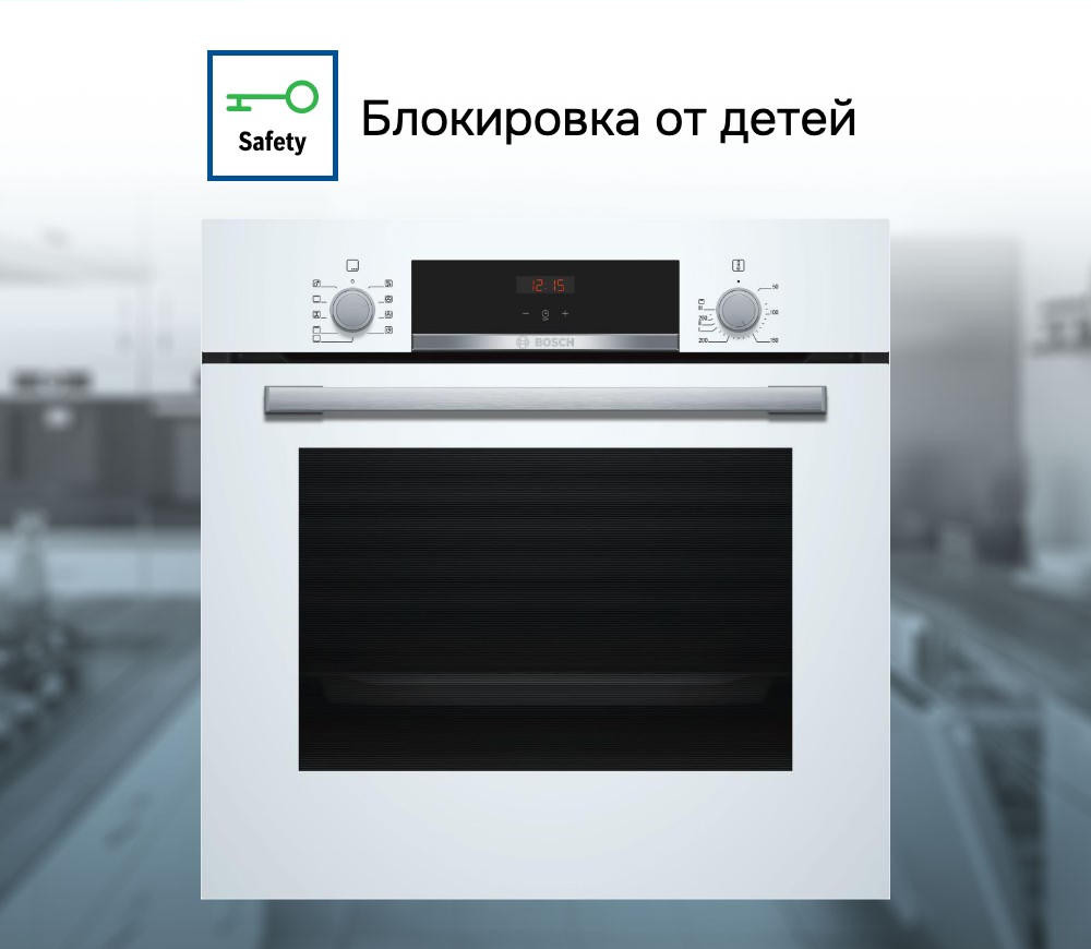 Духовой шкаф Bosch HBF534EW0R — это электрическая независимая модель из линейки Serie | 4. Ее внутренний объем составляет 66 литров, благодаря чему в ней можно запекать сразу несколько блюд, либо одно большое. Она выполнена в белом цвете, благодаря чему хорошо вписывается в различные виды современного кухонного интерьера. Управление осуществляется с помощью сенсорных кнопок, а также поворотных и утапливаемых переключателей. LED-дисплей устойчив к высоким температурам, а также имеет качественное изображение под любым углом. Благодаря многофункциональным часам Easy Clock можно с легкостью отслеживать время до окончания работы одной из программ.