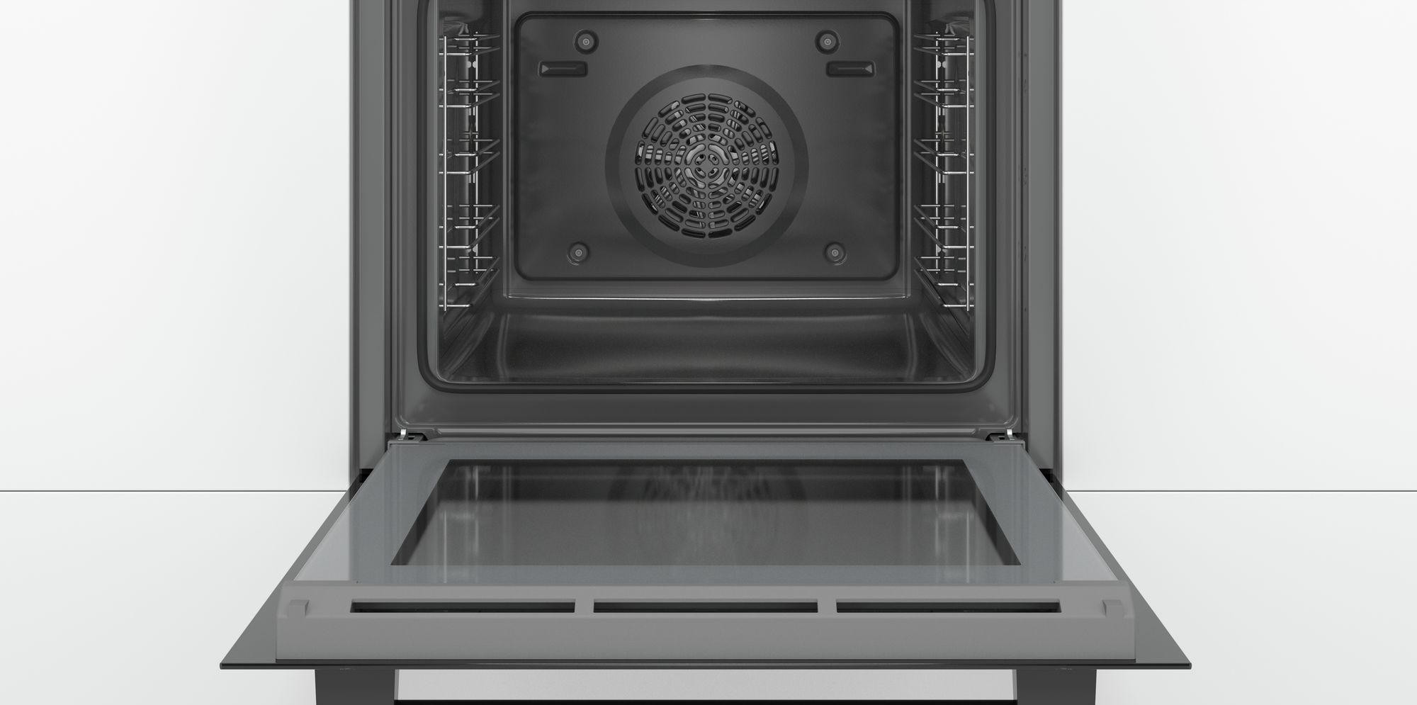 Как и все духовки из линейки Serie 6, Бош HBG517BB0R оборудована грилем, двумя ТЭНами и вентилятором для обдува горячим воздухом. Отдельно для выпечки предусмотрен режим пиццы. Опция «Быстрый нагрев» подразумевает не нагрев самого блюда, а прогрев духовки перед началом приготовления.