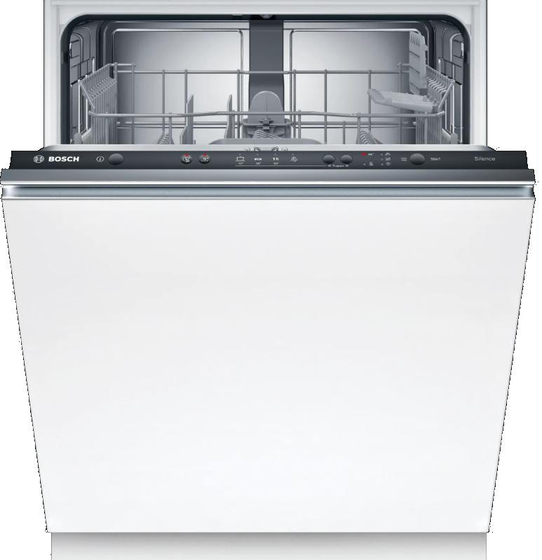 Встраиваемая посудомоечная машина Bosch SMV24AX04E — это высококачественное устройство, произведенное в Евросоюзе, предназначенное для полноразмерного использования. Она обладает черной панелью управления, которая идеально впишется в любой современный интерьер кухни. Дизайн этой модели подчеркивает ее функциональность и технологичность, а также гармонично сочетается с другими элементами кухонного оборудования. Особенностью машины является наличие инверторного двигателя EcoSilence Drive, который обеспечивает тихую и эффективную работу. Этот двигатель значительно улучшает качество мытья посуды и при этом экономит энергию. Встроенный теплообменник обеспечивает высококачественную сушку посуды, а система SpeedPerfectPlus позволяет ускорить процесс мытья без потери качества. Машина оснащена четырьмя стандартными программами мытья, которые позволяют выбрать оптимальный режим в зависимости от степени загрязнения посуды и экономии ресурсов. Три температурных режима позволяют настроить процесс мытья под конкретные типы посуды. Верхний короб машины можно регулировать по высоте, что позволяет разместить большое количество посуды различных размеров. В нижнем коробе предусмотрены две складные направляющие для тарелок и отдельная корзина для столовых приборов. Посудомоечная машина оснащена системой AquaStop, которая предотвращает протечки, а также функцией самоочистки фильтра. Материал внутреннего резервуара — комбинация нержавеющей стали и пластика, что обеспечивает долговечность и надежность машины.