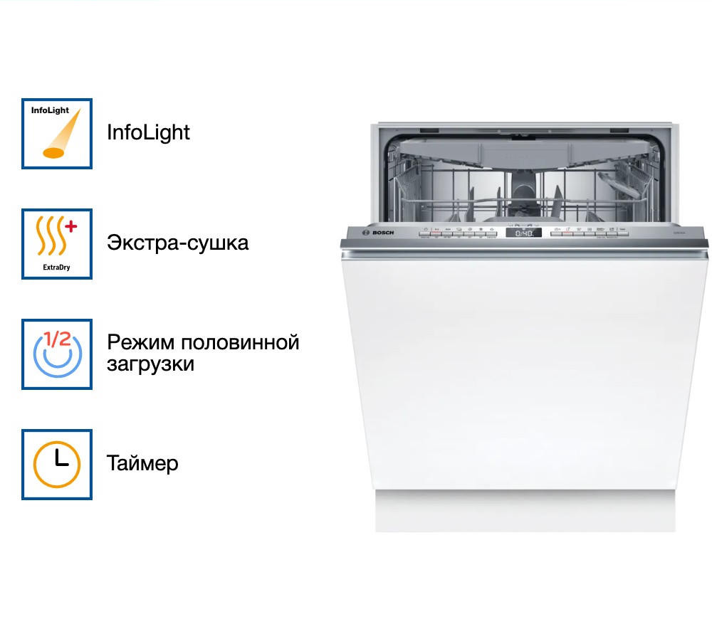 Встраиваемая посудомоечная машина Bosch SMV4HVS03E — это современное решение для тех, кто ценит комфорт, качество и стиль в своем доме. Устройство изготовлено в Евросоюзе и обладает гарантией на 12 месяцев. Представленная модель относится к серии Serie | 4, которая славится своим надежным и функциональным оборудованием. Устройство обладает широким спектром функций и особенностей, которые делают его использование максимально удобным и эффективным.