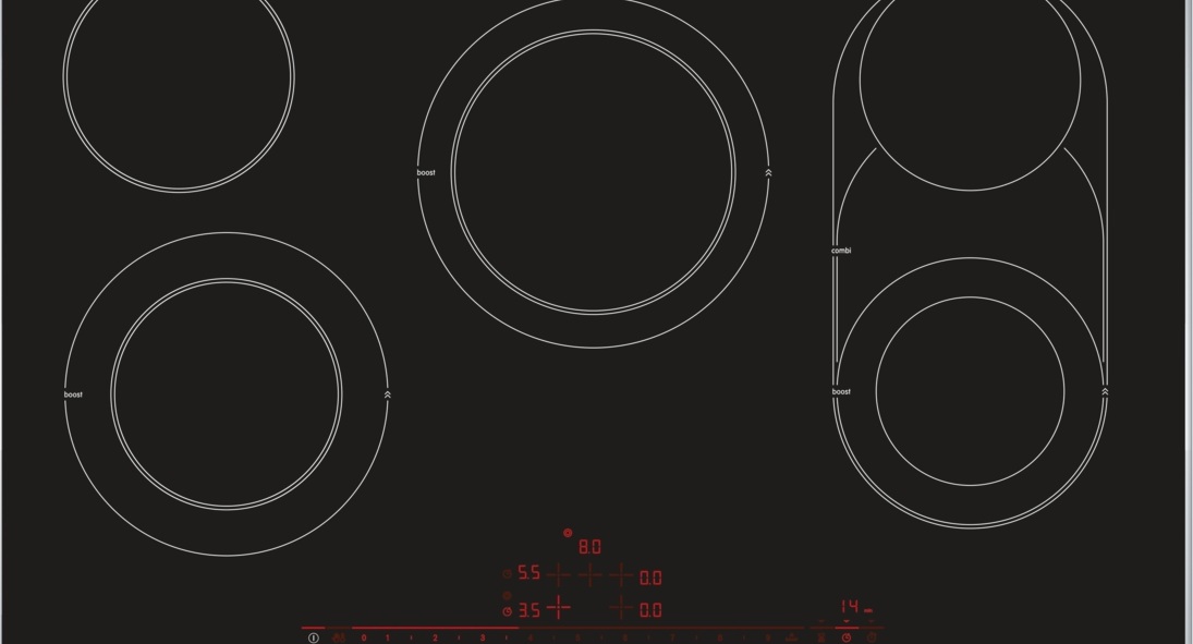 - Гибкость приготовления с пятью конфорками, включая овальную и двухконтурные.