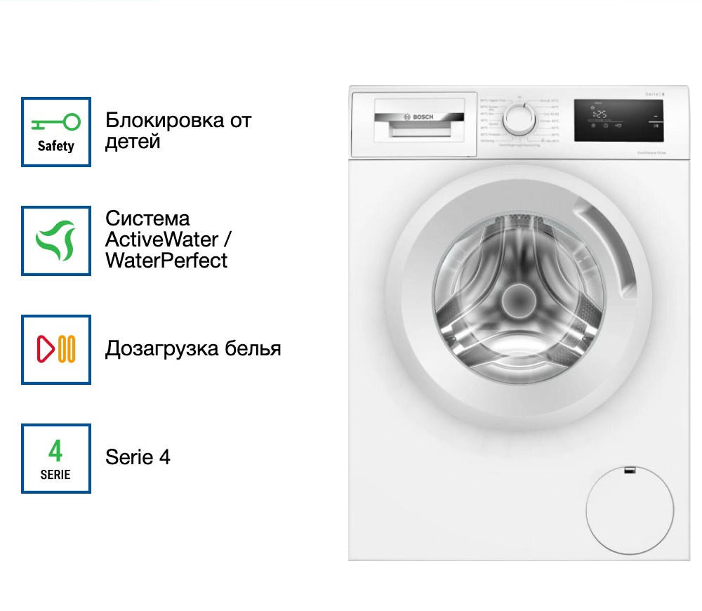 Для безопасной эксплуатации предусмотрена функция «Защиты от детей», которая блокирует панель управления. Поэтому дети, которые так любят нажимать на кнопки, не смогут случайно активировать работу устройств. Эта функция крайне необходимо для семьи, где есть дети, чтобы предотвратить возможные последствия. Товар защищен от чрезмерного образования пены из-за неправильной дозировки моющего средства и сильной вибрации из-за сбивания белья в большие комки. Стандартная программа для стирки одежды из хлопка необходима каждому, так как в выходном или домашнем гардеробе всего есть вещи из натуральной ткани.